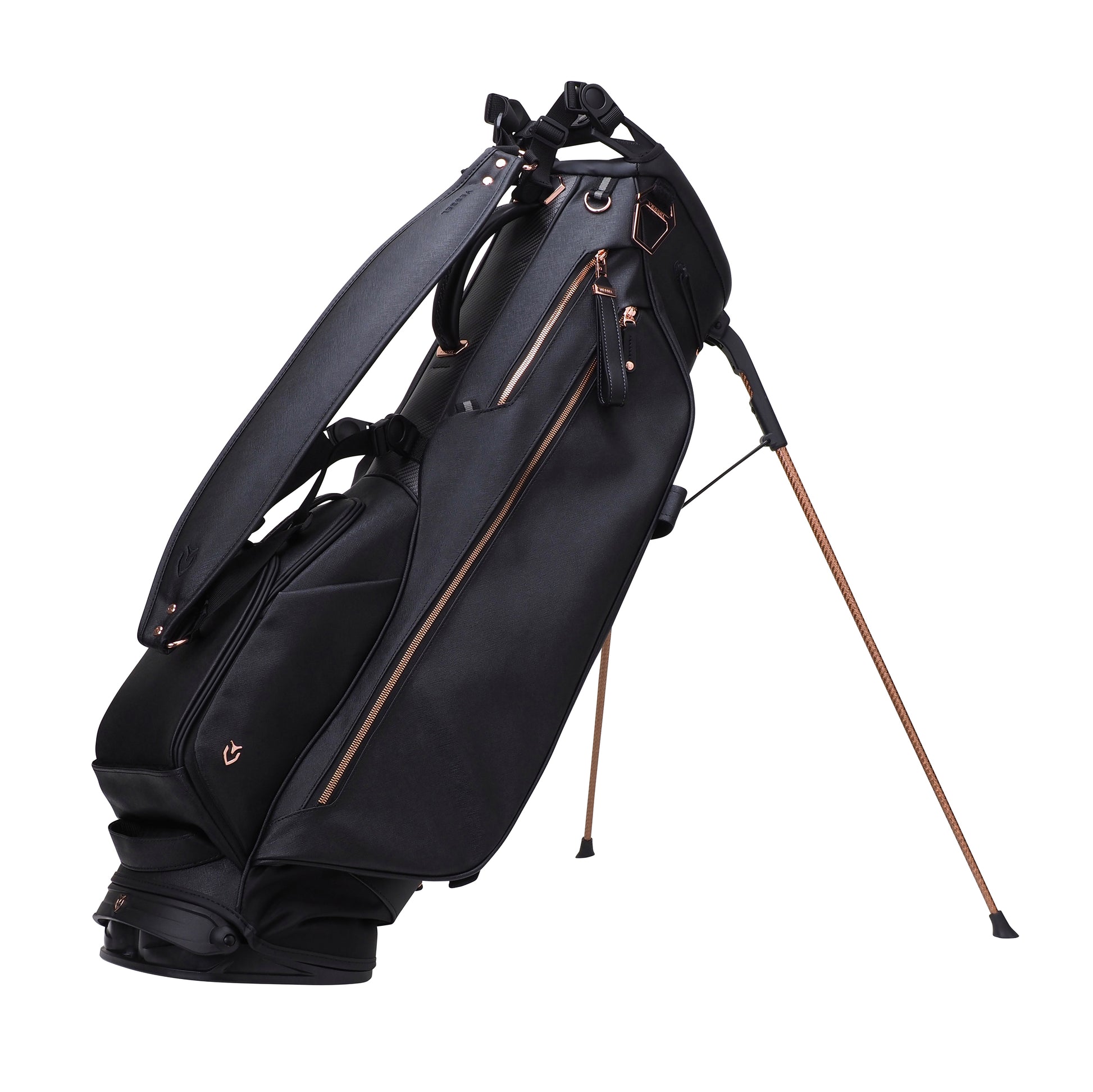 - ※VESSELのスタンドバッグは、スタンドを広げた状態での使用を前提に設計・製造されております。クラブを入れたままで、スタンドをたたみバッグを立てた場合、バッグが傾いたり、転倒する恐れがございます。ご使用に当たっては、スタンドを広げた状態でご利用ください。
