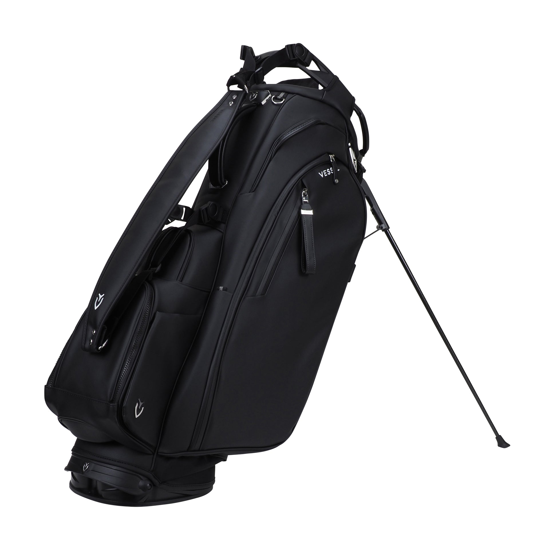 - ※VESSELのスタンドバッグは、スタンドを広げた状態での使用を前提に設計・製造されております。クラブを入れたままで、スタンドをたたみバッグを立てた場合、バッグが傾いたり、転倒する恐れがございます。ご使用に当たっては、スタンドを広げた状態でご利用ください。